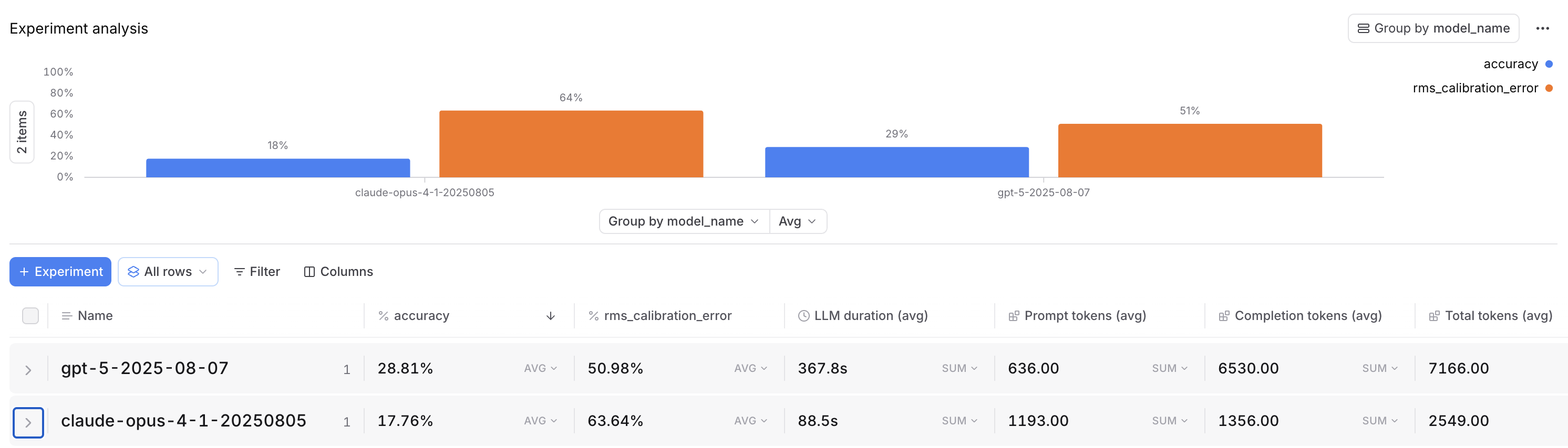 Experiment results