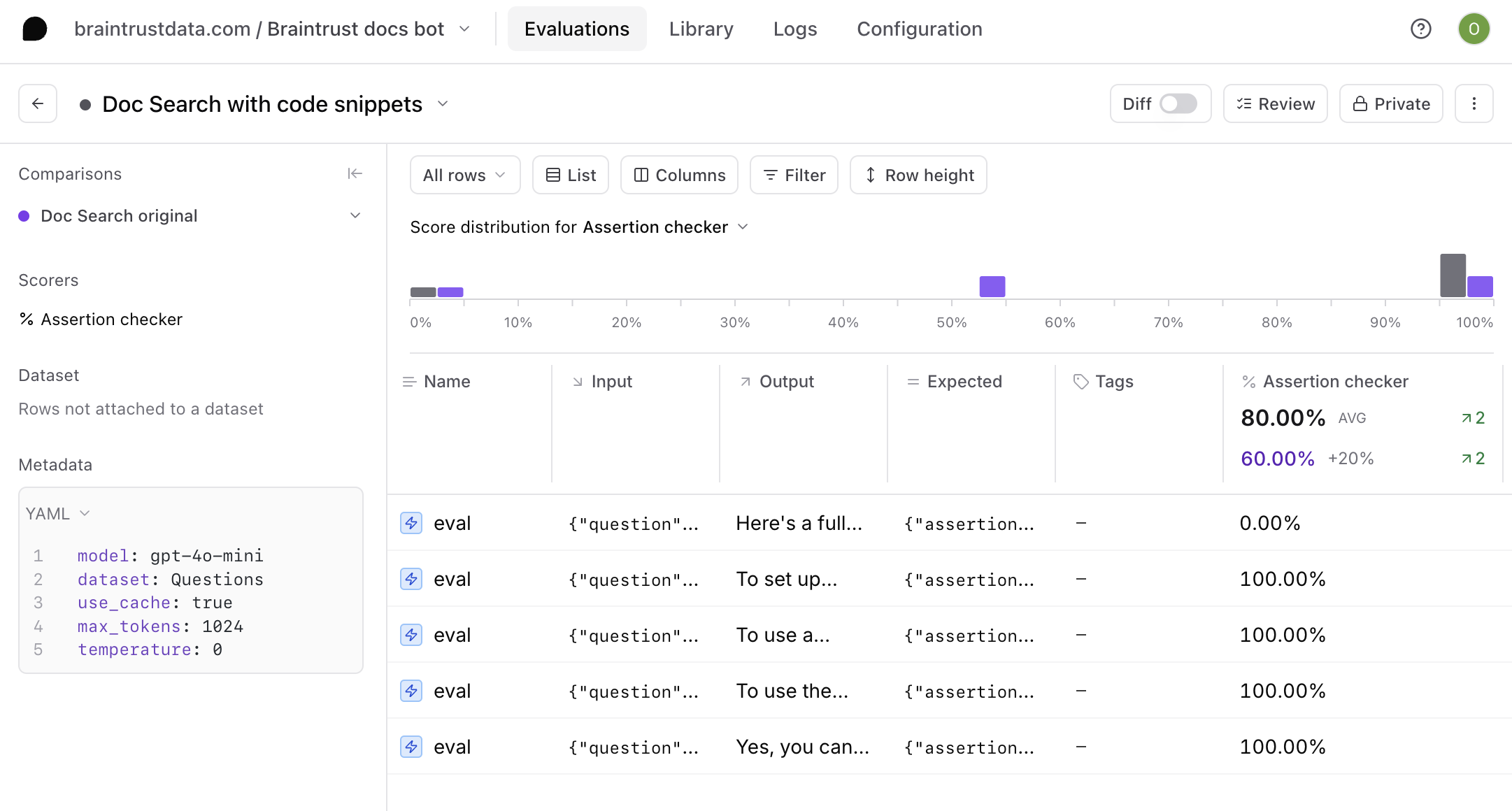 The playground is very interactive, but if you'd like to create a more detailed evaluation, where you can: